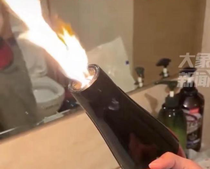 ▲很快,吹风机里喷出的火焰就可以引燃被褥。