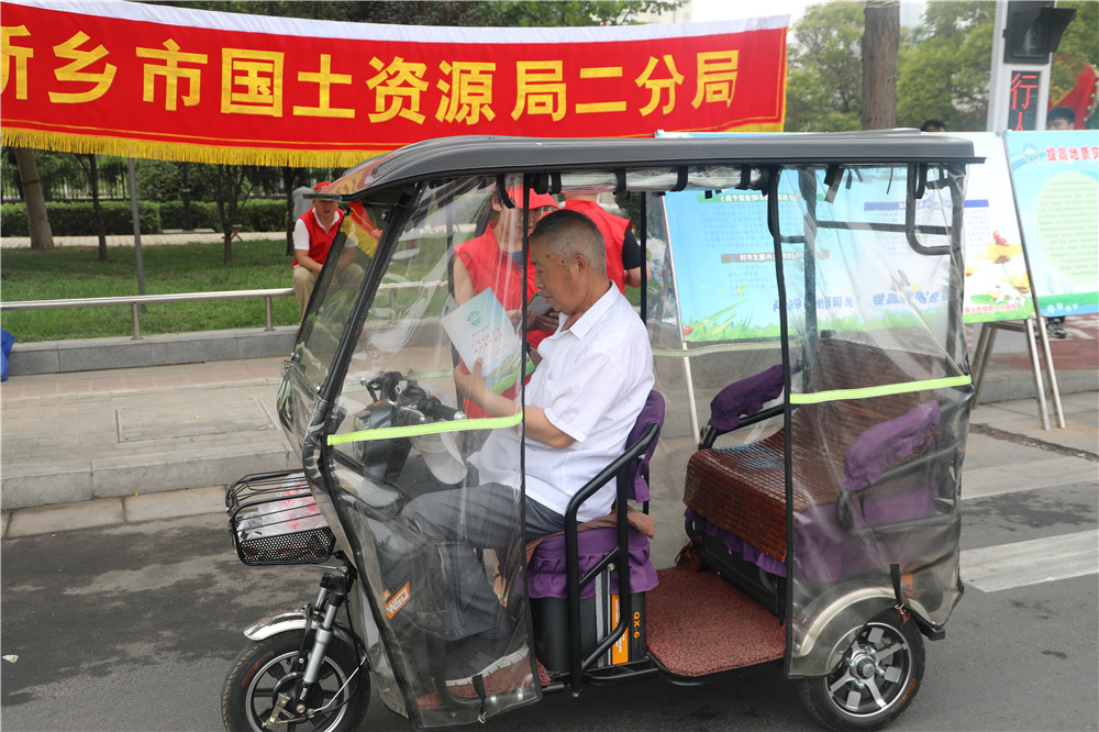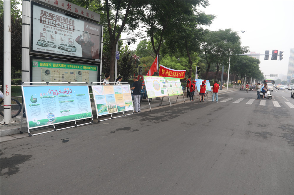 一是在局机关门口悬挂宣传横幅,向社会大众宣传“土地日”主题;二是利用短信平台向全市国土资源系统干部职工发送宣传短信;三是在局机关一楼大厅宣传栏及市民中心局窗口处张贴宣传海报,并向在窗口处向群众发放宣传资料;四是联合一分局、二分局在新乡市人民公园东门设立宣传台,悬挂宣传标语,摆放展板,发放宣传资料,共发放宣传资料900余份,接受群众咨询300人次。