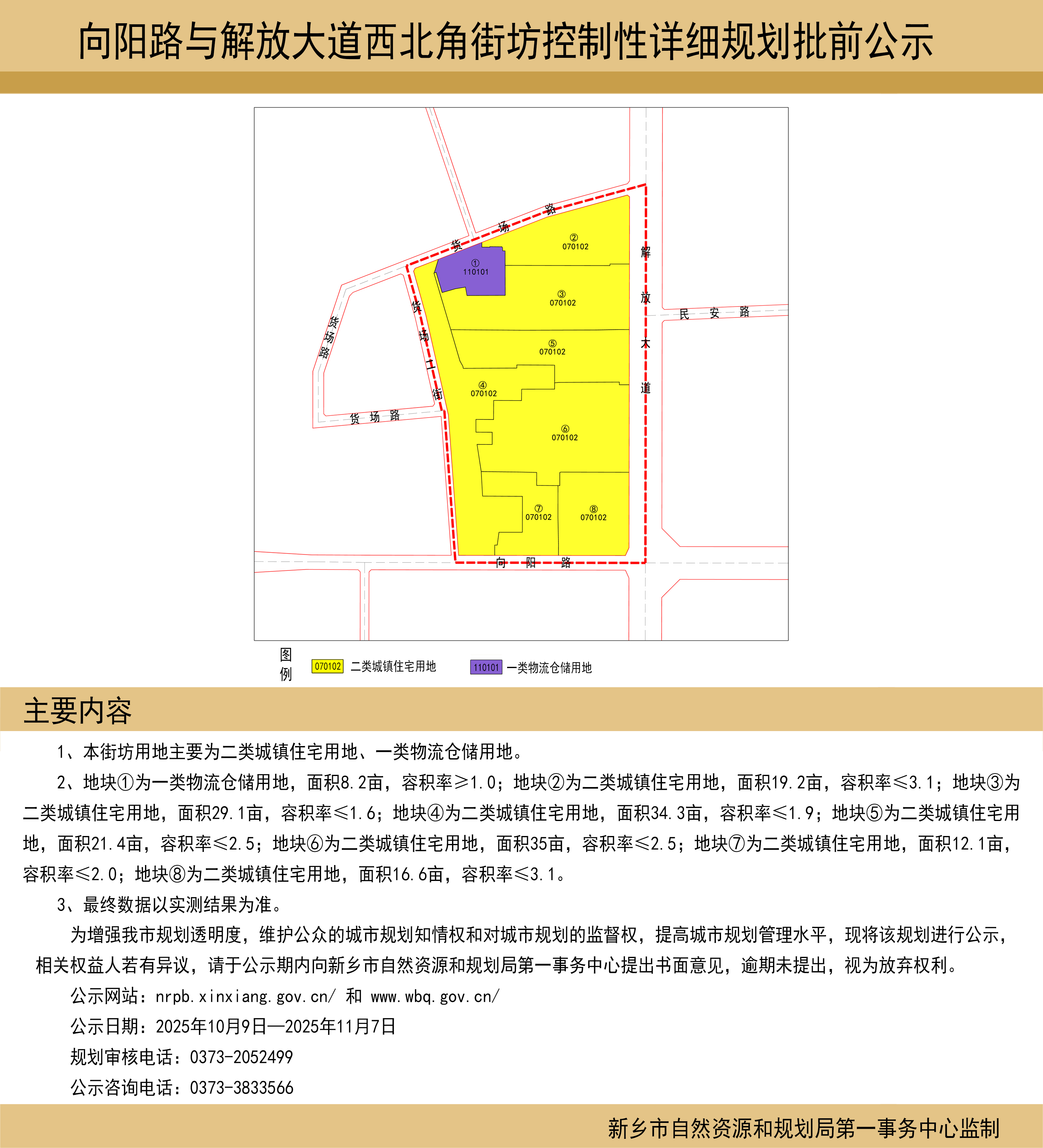 向阳路与解放大道西北角街坊控制性详细规划批前公示
