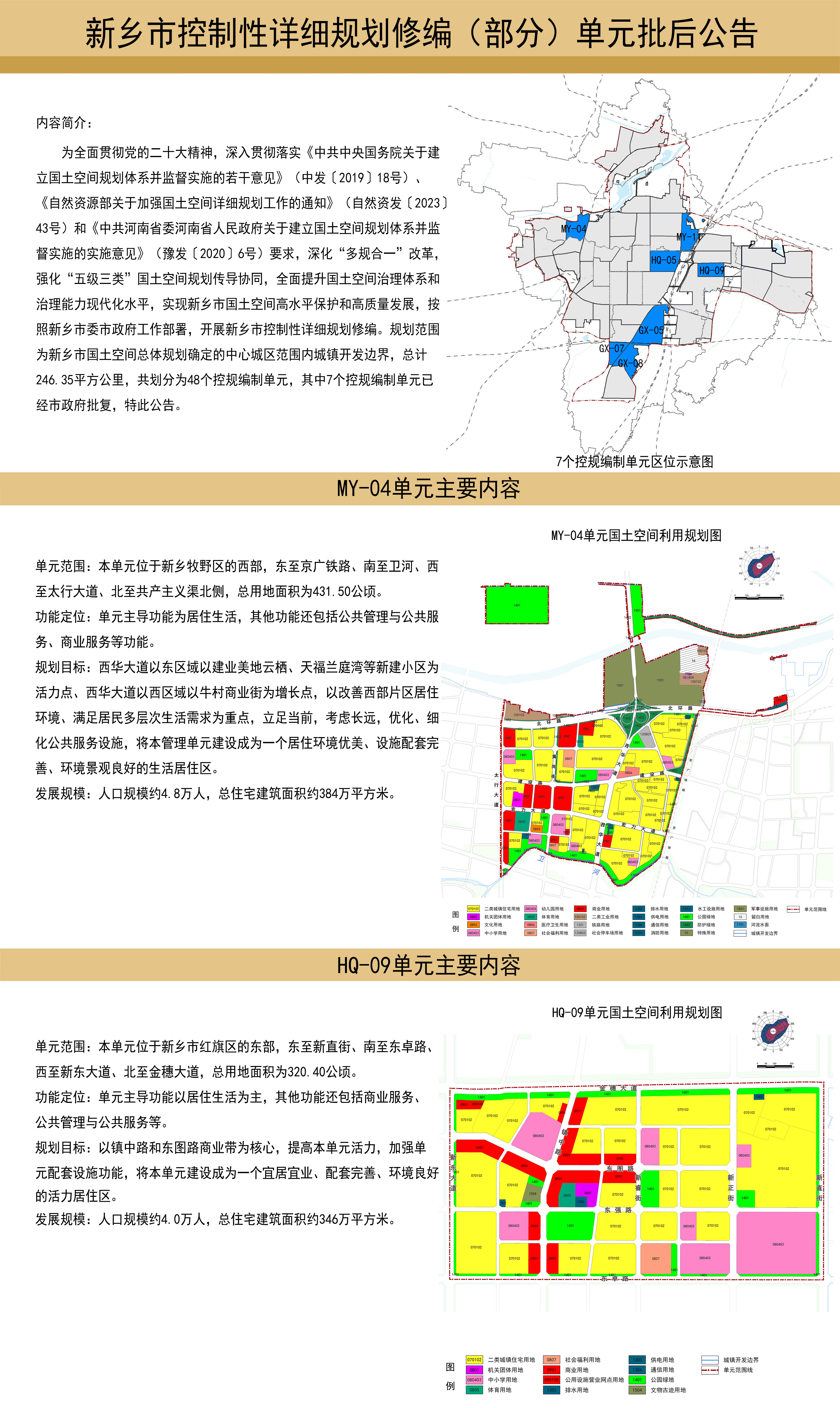 新乡市控制性详细规划修编MY-04(部分)单元批后公告