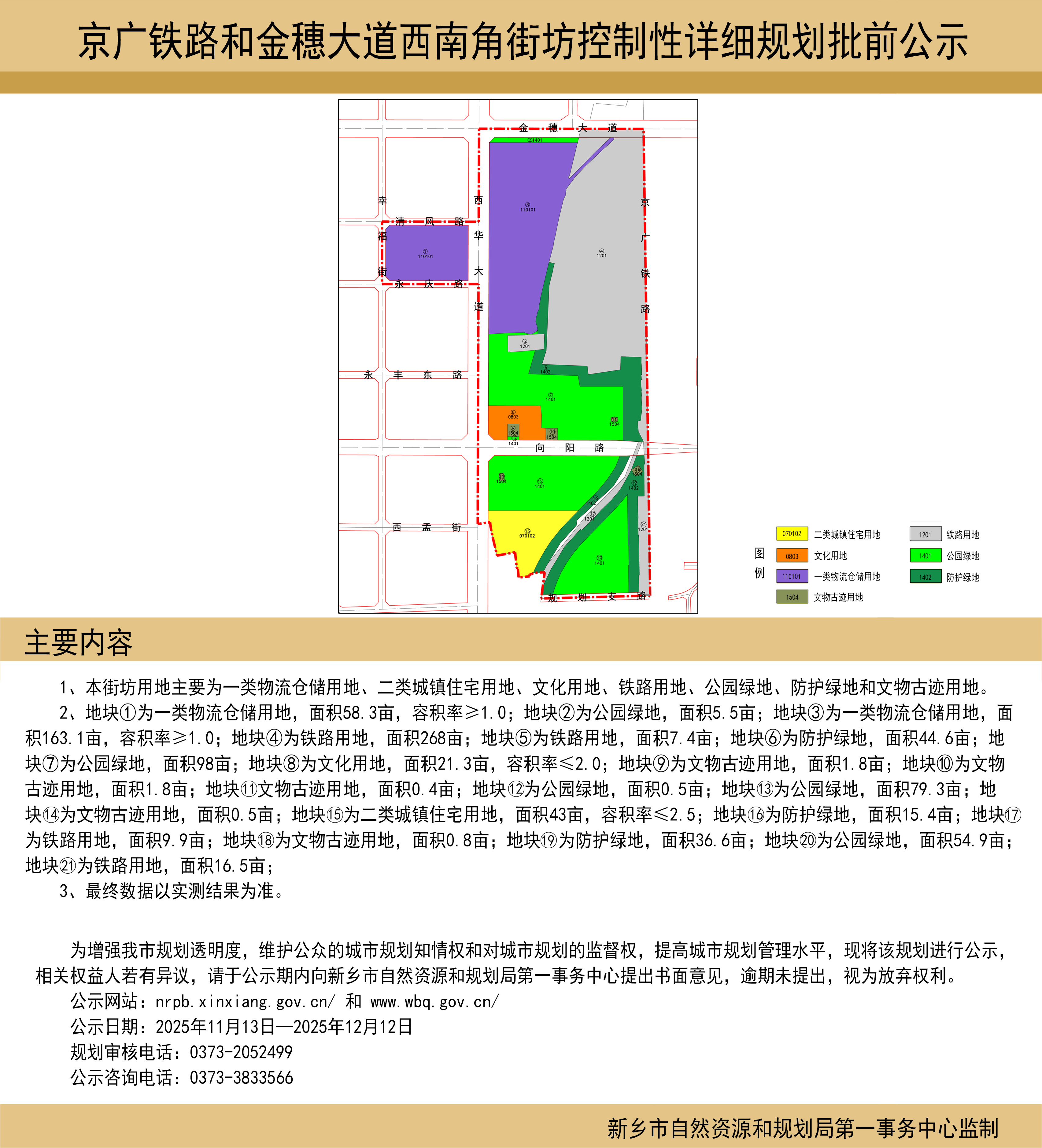京广铁路和金穗大道西南角街坊控制性详细规划批前公示