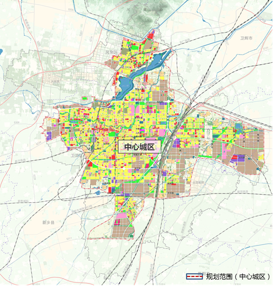 本次规划范围为新乡市中心城区,东至友善路,南至金融路(S311),西至卫滨区界,北至滨河路,面积329.05平方千米。