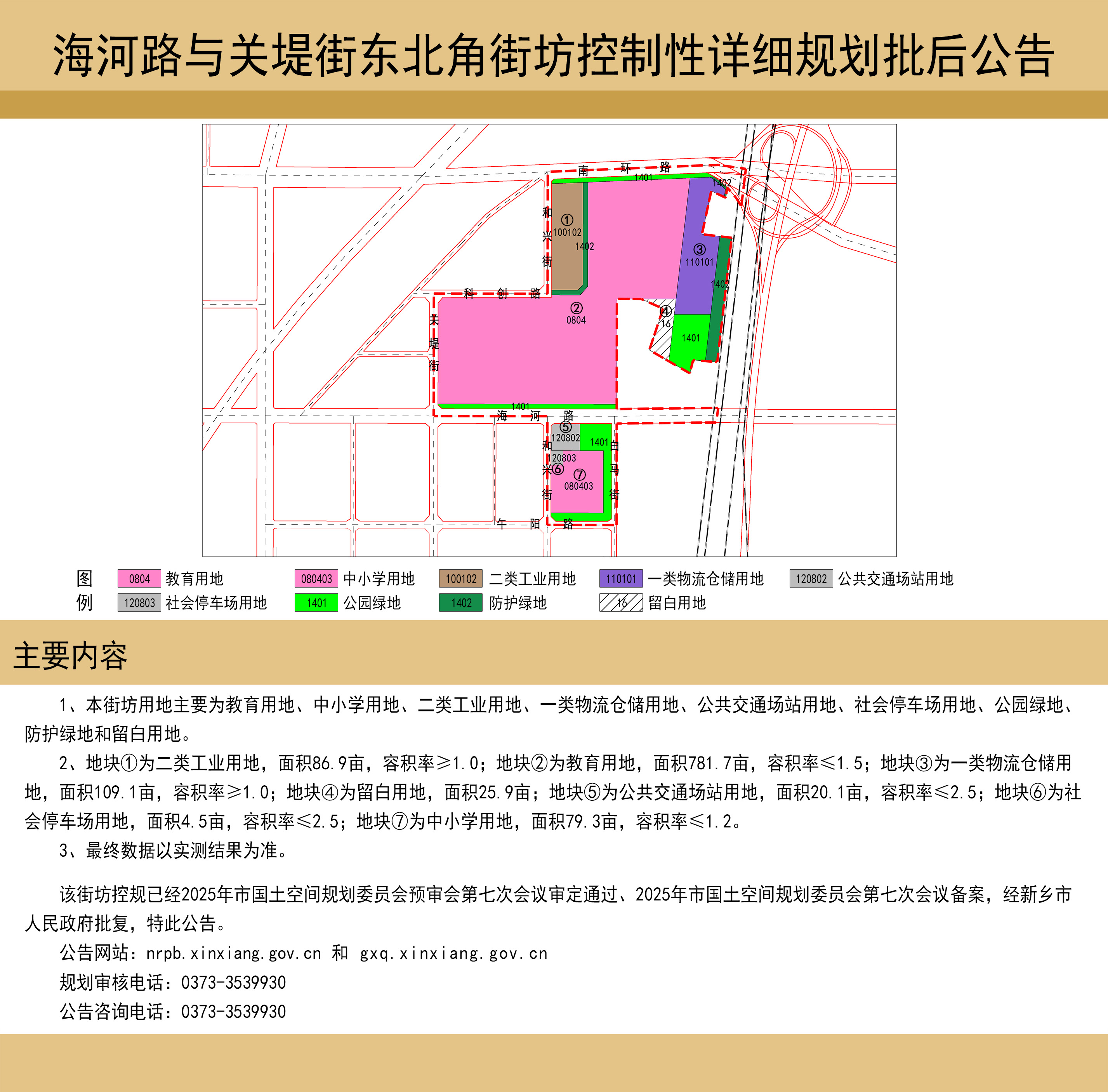 海河路与关堤街东北角街坊控制性详细规划批后公告