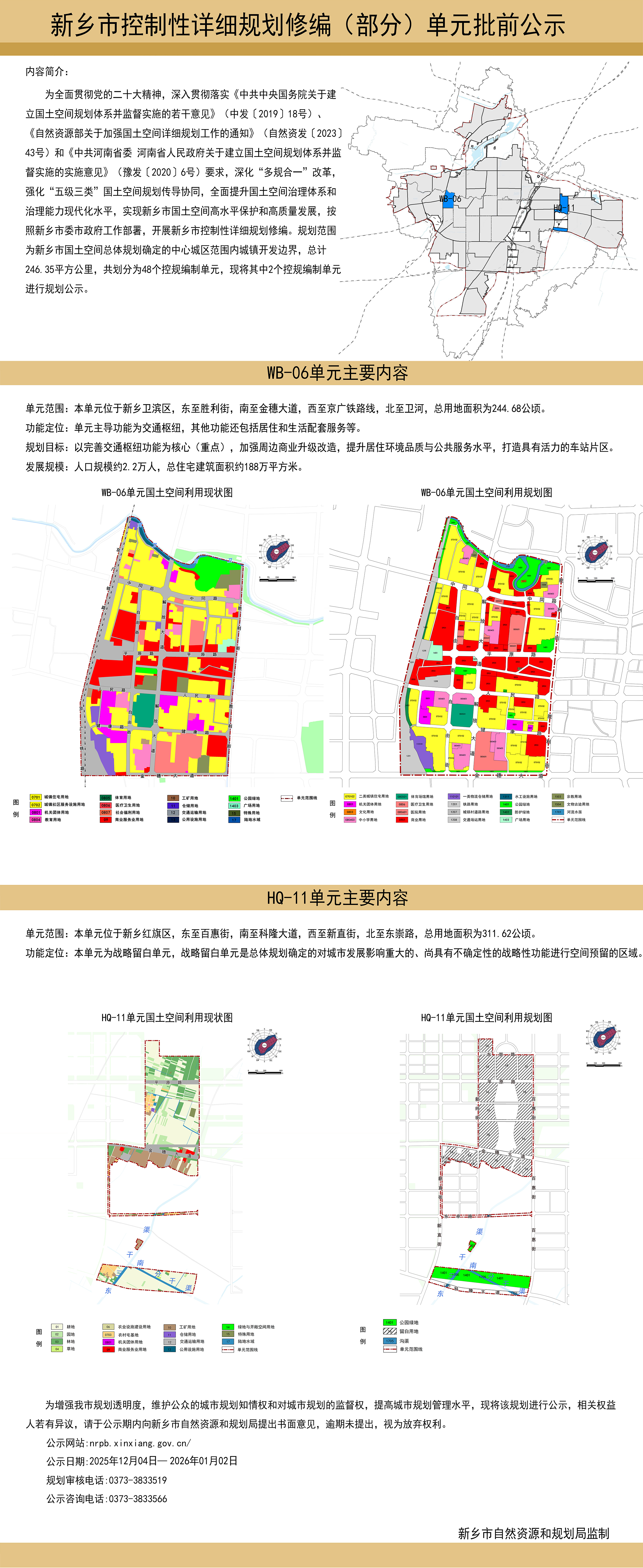 新乡市控制性详细规划修编WB-06(部分)单元批前公示