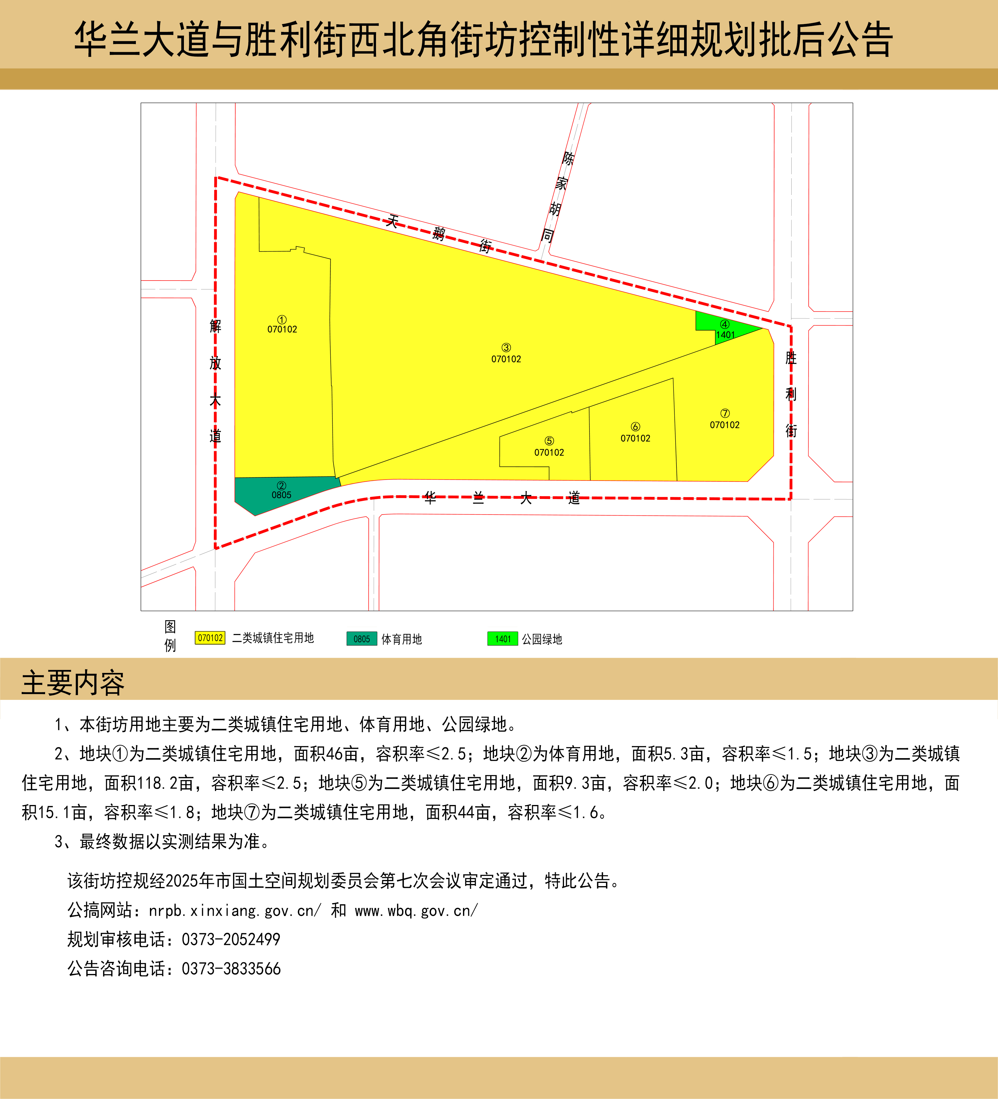 华兰大道与胜利街西北角街坊控制性详细规划批后公告
