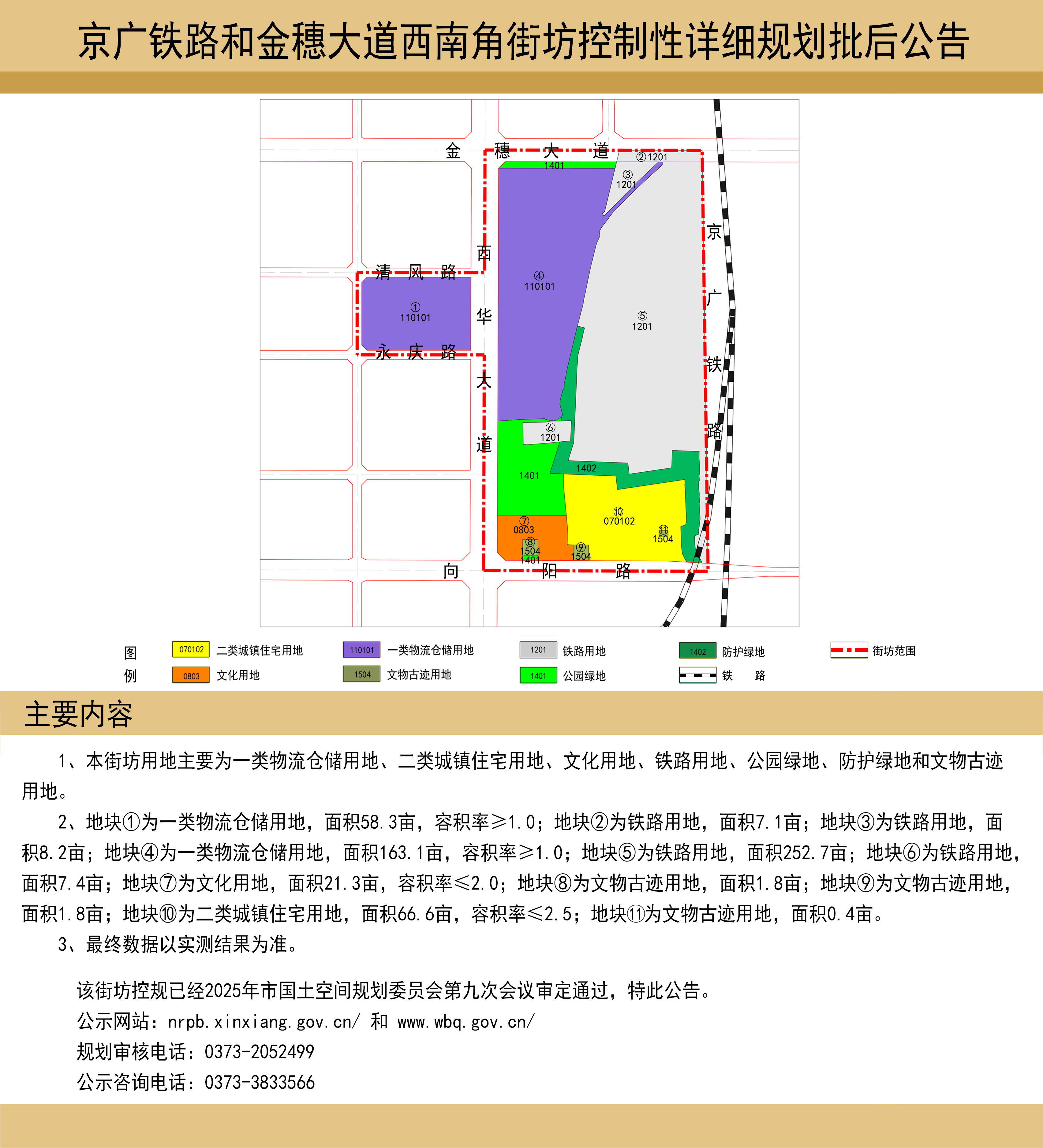 京广铁路和金穗大道西南角街坊控制性详细规划批后公告